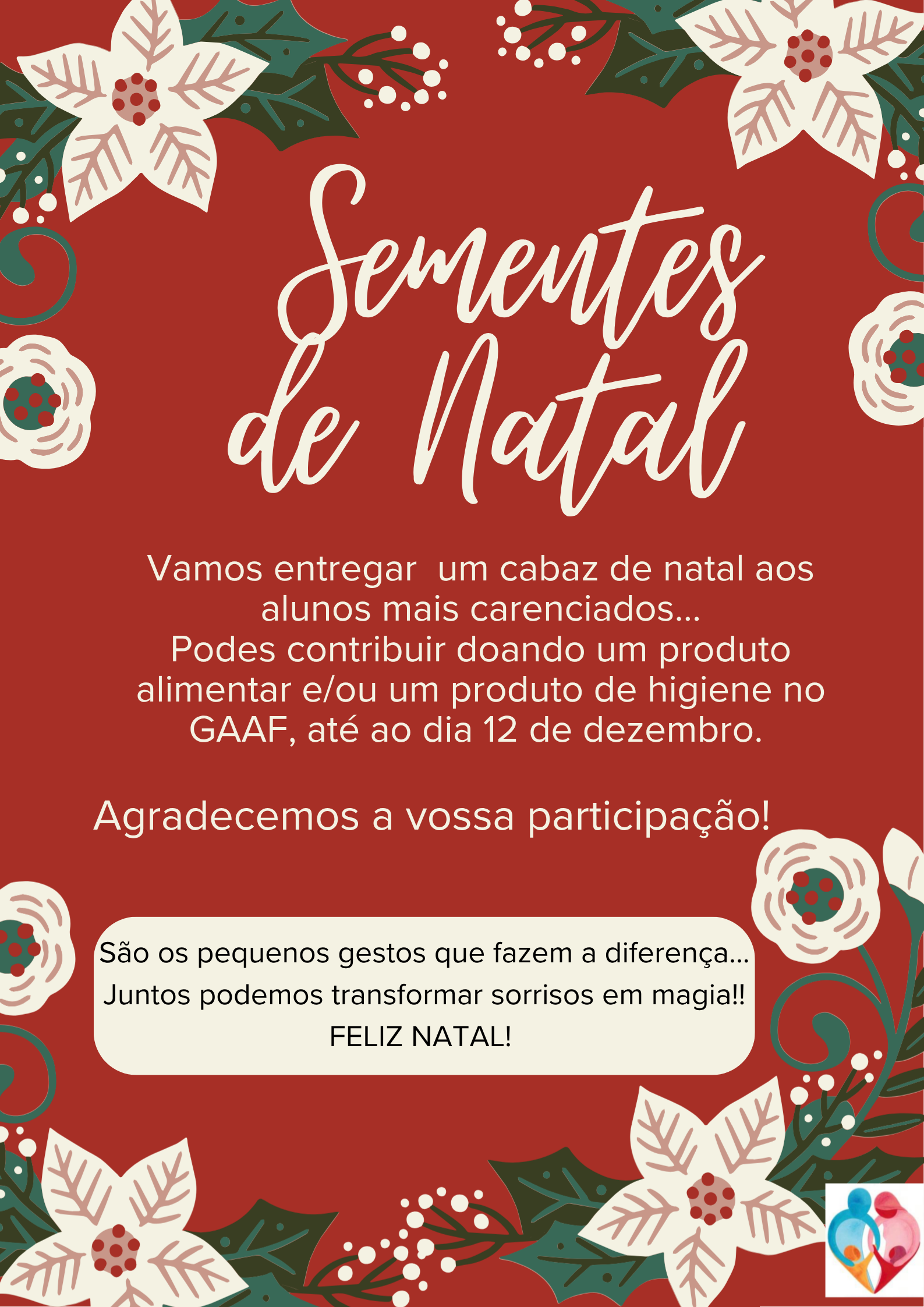 O Gabinete de Apoio ao Aluno e à Família - GAAF, no mês de Dezembro realizou a campanha de solidariedade - Sementes de Natal, que teve como objetivo suprir as necessidades das famílias dos alunos mais carenciados.